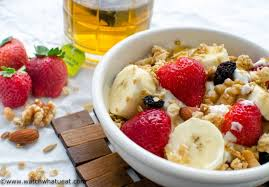 The creaminess of the Greek yoghurt blends beautifully with the chewy texture of oats. On the other hand, bananas, apples, berries, mangoes or papayas add natural sweetness to the bowl. On top of that, you can also add a drizzle of honey or maple syrup.
